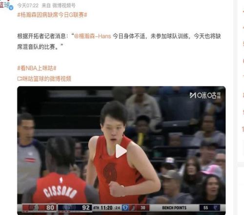 緊接著開(kāi)拓者的記者又證實(shí)了楊瀚森確實(shí)因?yàn)樯眢w不適沒(méi)有參加訓(xùn)練,也不會(huì)參加發(fā)展聯(lián)盟的賽事。在這樣的情況下,球迷就更加擔(dān)心楊瀚森到底是不是腦震蕩了。不過(guò)關(guān)于目前的這些猜測(cè),我們看到球隊(duì)的記者已經(jīng)進(jìn)行辟謠,表示和灰熊隊(duì)那場(chǎng)比賽的情況沒(méi)有任何的關(guān)系。楊瀚森只是純粹的身體不舒服,再加上他透露了球隊(duì)有一半的人都得了類(lèi)似的癥狀,按照這樣的情況來(lái)看,應(yīng)該是得了流感,所以大家都身體不舒服。