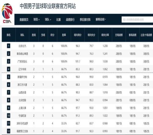 5、CBA前三輪積分榜,具體排名如下: