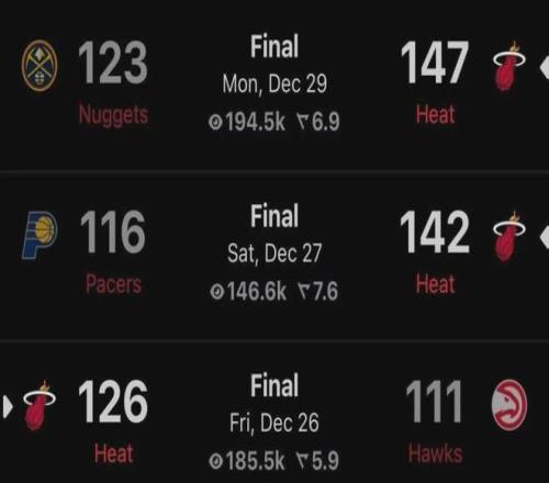 講下勝利者熱火,一直以防守強(qiáng)硬聞名的他們,本賽季玩起了進(jìn)攻流,打掘金147分,上一場(chǎng)VS步行者142分進(jìn)賬,連續(xù)兩場(chǎng)得分140+,非常極其瘋狂。